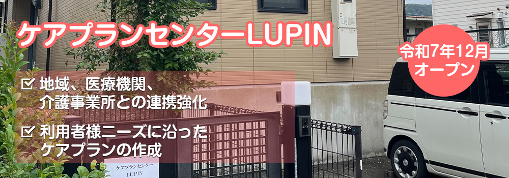 有限会社LUPIN(ルーピン)は、訪問介護、通所介護、認知症対応型共同生活介護の介護保険サービスを中心に、訪問介護事業所での障害サービスを行っており、ルピナスグループの看護、リハビリテーションと連携を取り、地域に密着したサービスを提供しています。