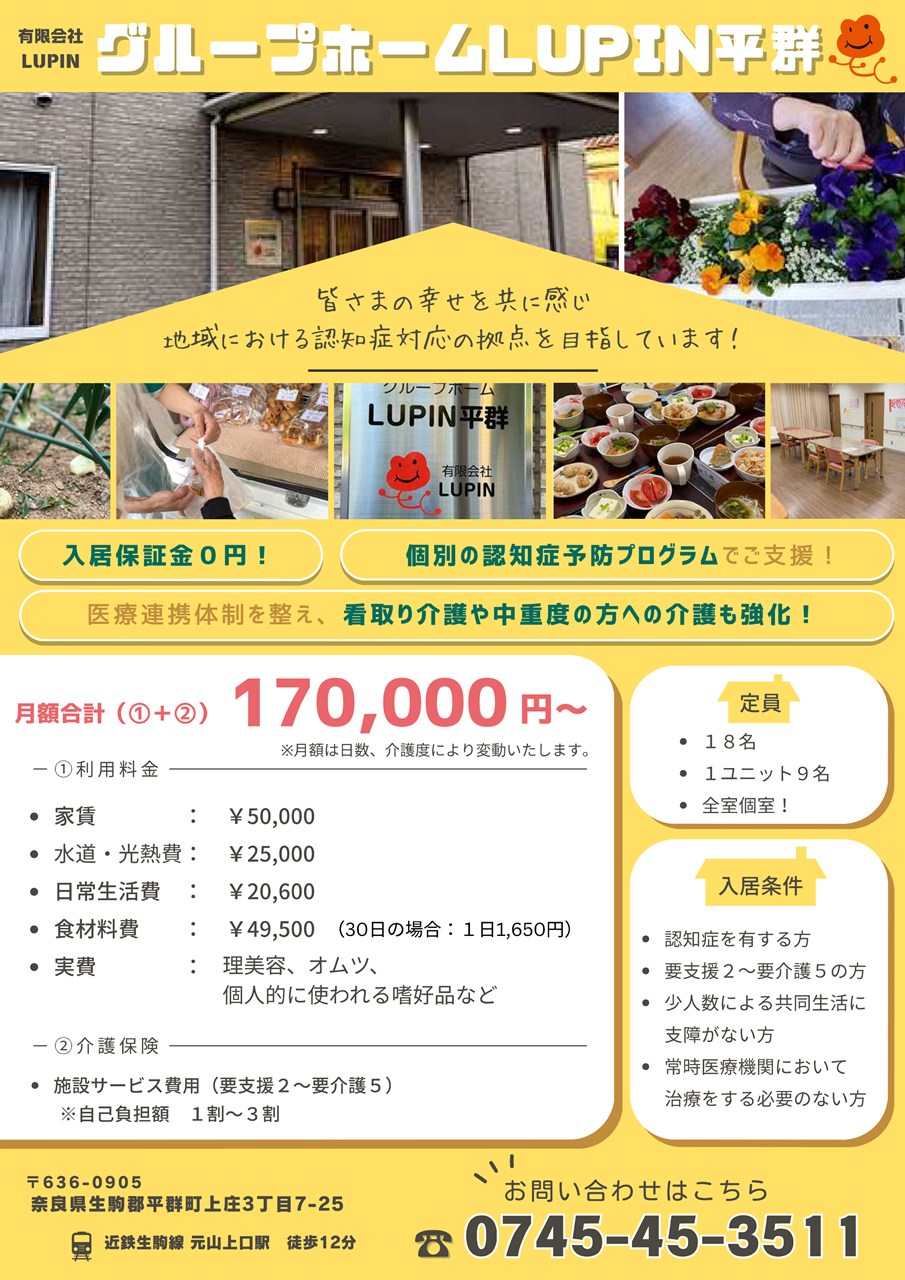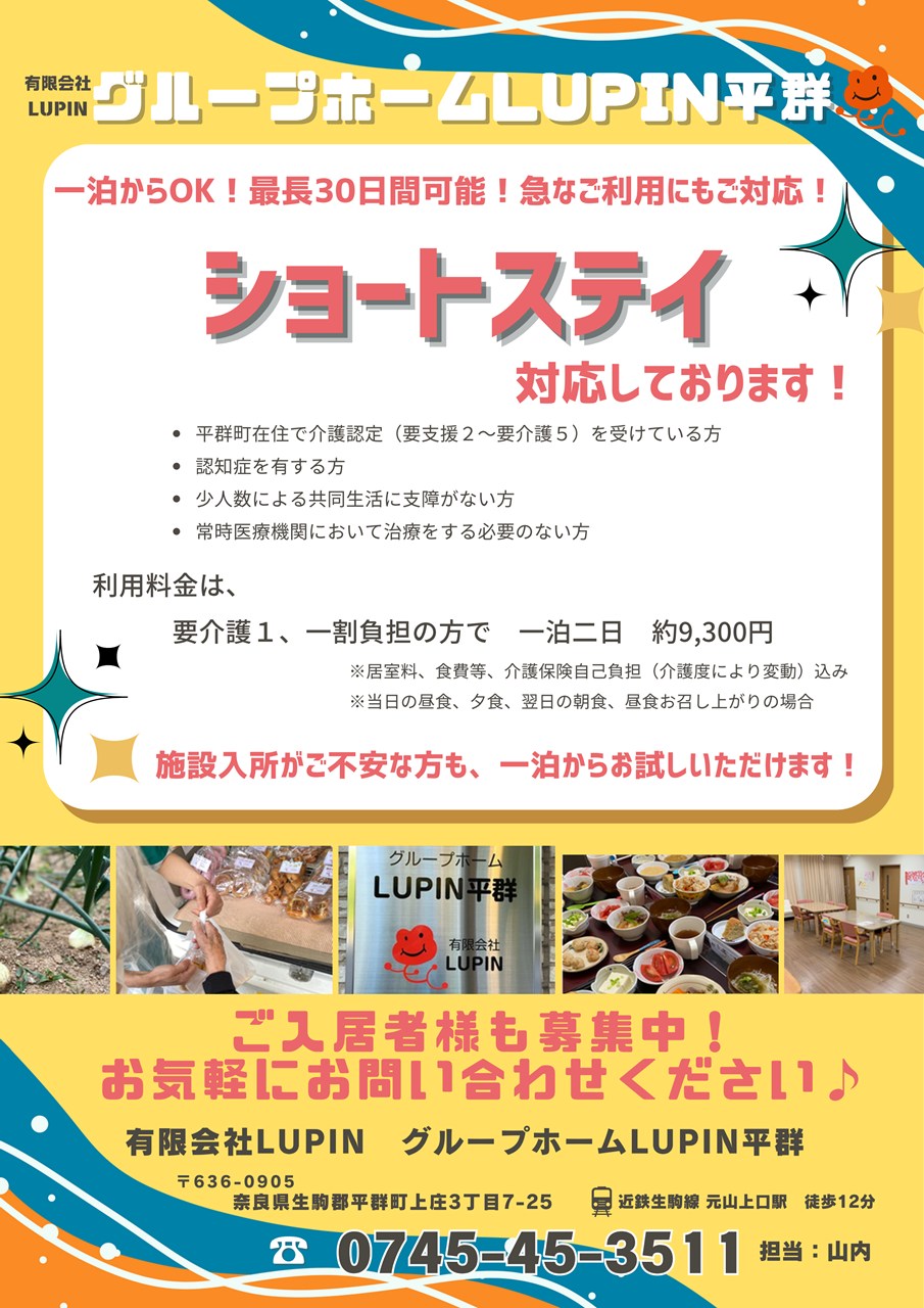 グループホームLUPIN平群 ショートステイ&入居者募集!